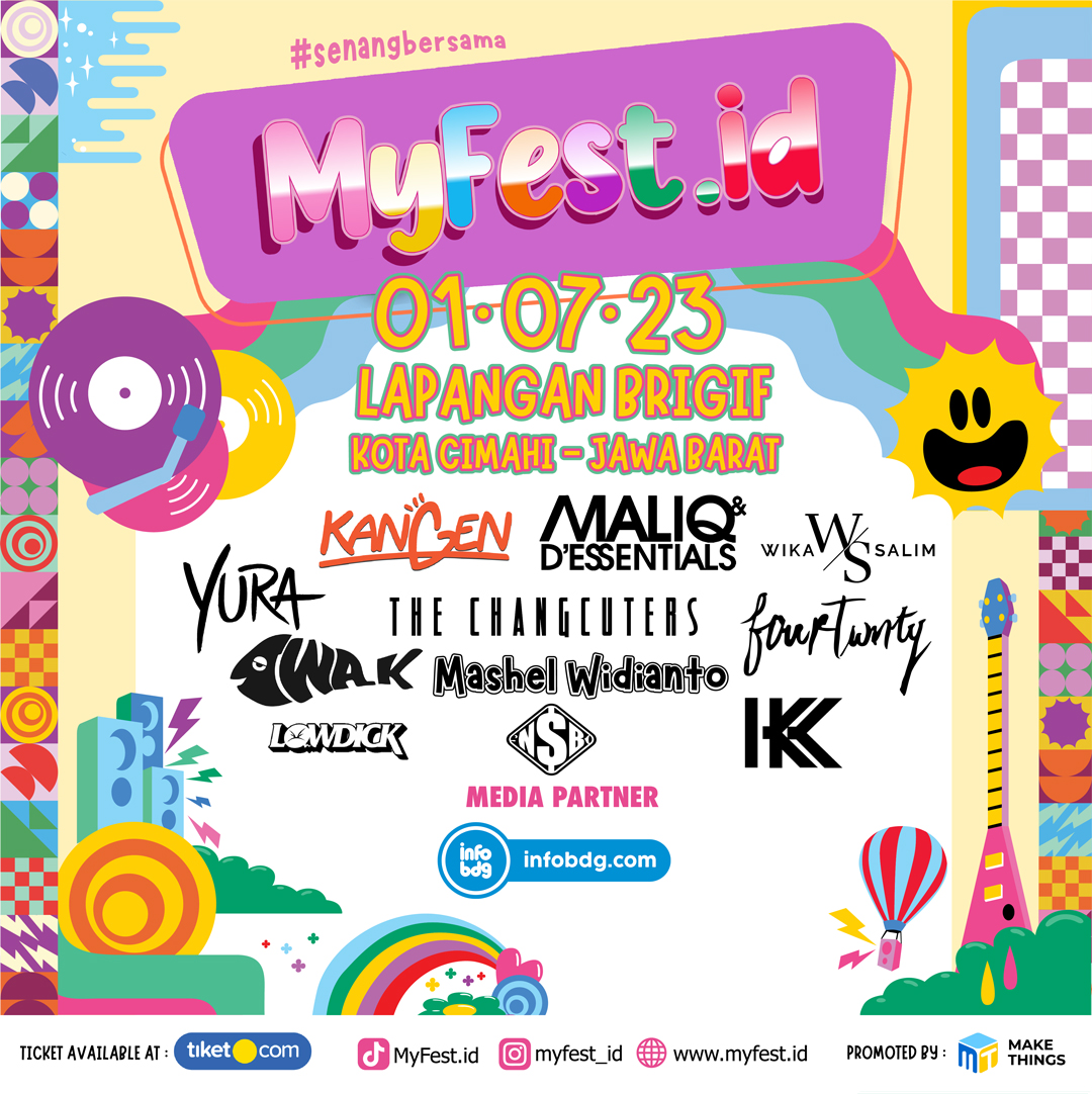 Jadilah orang pertama yang menyaksikan konser paling beda di tahun ini! Hanya di MyFest.id, Wargi Bandung akan merasakan pengalaman Interactive Concert yang belum pernah ada sebelumnya, bersama 10 Line Up dengan berbagai genre music. Menampilkan Yura Yunita, Maliq & D’Essentials, Fourtwnty, The Changcuters, Iwa K, Kangen Band, Wika Salim, Diskopantera dan Local Heroes (Lowdick, NSB), Host by Marshel Widianto. Yuk, kita #SenangBersama di MyFest.id, Sabtu, 1 Juli 2023 di Lapangan Brigif Cimahi! Amankan tiket sekarang dengan klik link di bio Instagram @myfest_id atau kunjungi website myfest.id