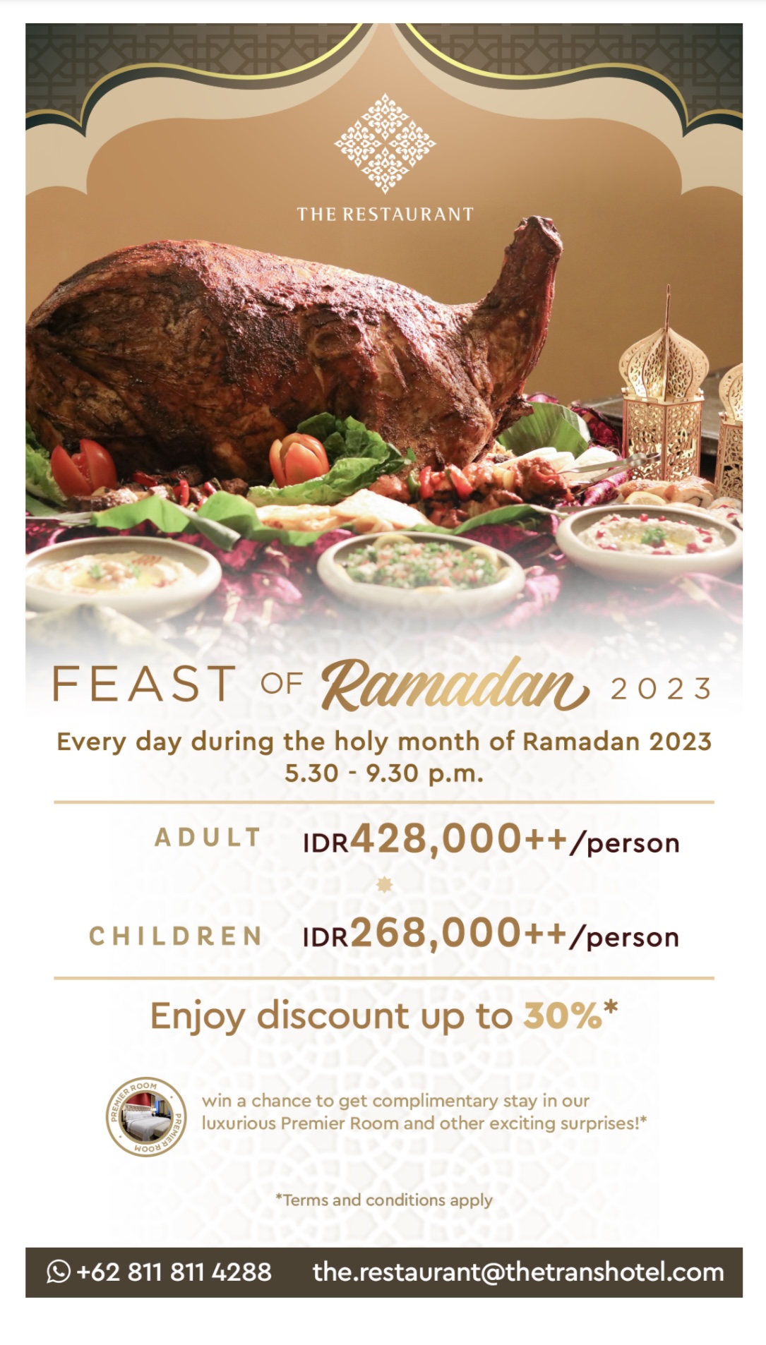 Jadi tunggu apa lagi? Jangan lewatkan penawaran ekslusif ini dan nikmati pengalaman bulan suci Ramadhan yang penuh makna dan tak terlupakan bersama keluarga dan sahabat tersayang.