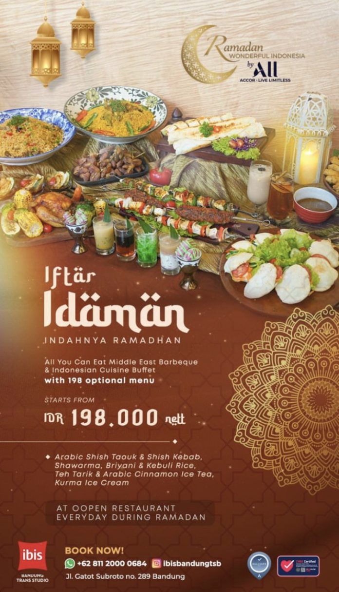 HOTEL, infobdg.com — Bulan suci Ramadhan telah tiba, ibis Bandung Trans Studio menghadirkan paket berbuka puasa dengan sensasi makanan ala Timur Tengah “Iftar Idaman Indahnya Ramadhan”.