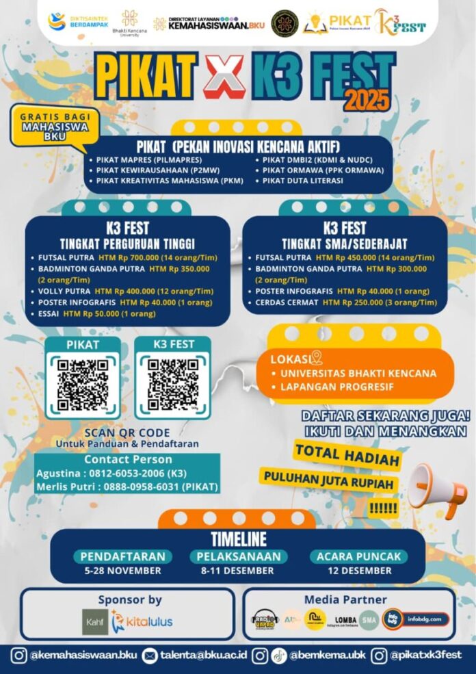 Segera daftarkan diri kamu dan ajak teman-temanmu untuk ikut memeriahkan rangkaian acara K3 FEST 2025!