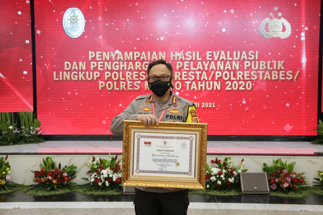 Penghargaan ini diberikan atas upaya Polrestabes Bandung dalam memberikan pelayanan publik yang prima kepada masyarakat.