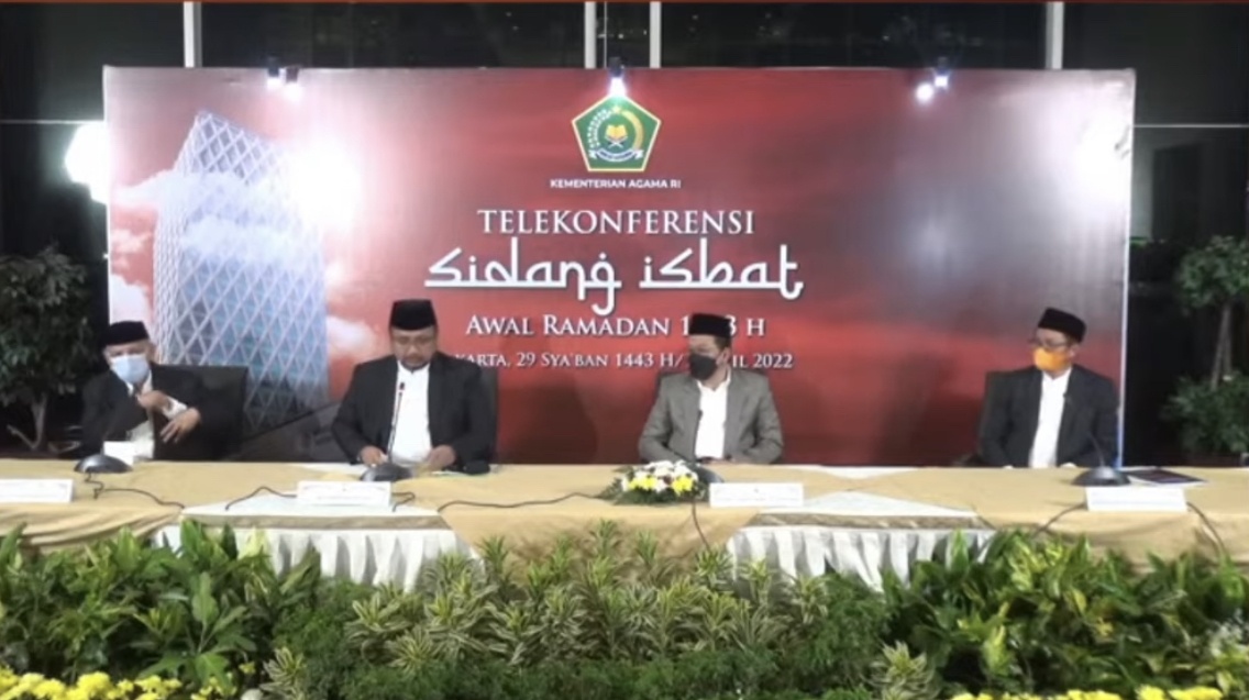 “Berdasarkan hisab posisi hilal seluruh Indonesia, secara mufakat bahwa 1 Ramadhan 1443 H jatuh pada hari Ahad (Minggu) 3 april 2022 masehi. Ini hasil Sidang Isbat yg baru kita sepakati bersama,” kata Menteri Agama RI, Yaqut Cholil Coumas, dalam jumpa pers langsung di Jakarta.